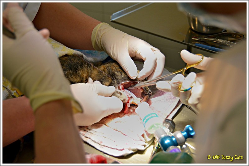 De hechtdraad die gebruikt wordt, lost vanzelf op als de wonden dichtgegroeid zijn. Gelukkig maar voor Puck, dan hoeft ze niet weer te kunstslapen om de hechtingen eruit te laten halen.