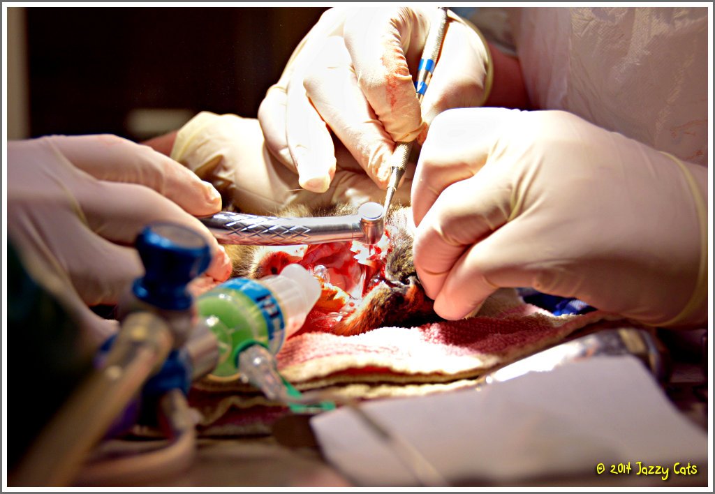 Nu Puck's onderkaak klaar is, wordt hetzelfde gedaan met haar bovenkaak. Hier worden weer gaten geboord.