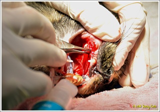 De losgemaakte kiezen worden uit de kaak gehaald ...